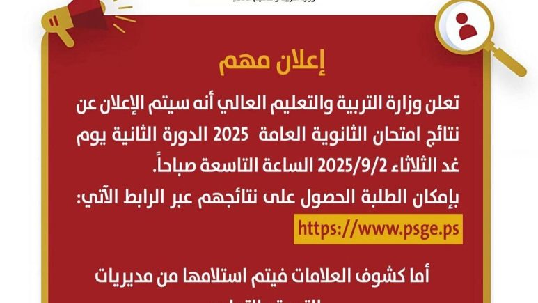 كشفت وزارة التربية والتعليم العالي في فلسطين عن نتائج الثانوية العامة – الدورة الثانية لعام 2007. هذه المرحلة مهمة جدًا للطلاب الذين يرغبون في تحسين مستواهم الدراسي أو استكمال النجاح في المواد التي لم يجتازوها سابقًا.