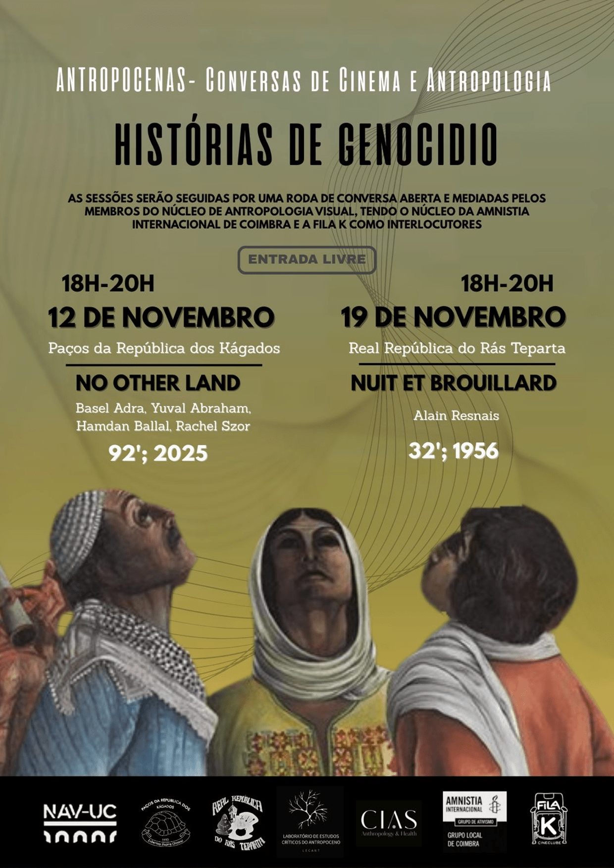 O Núcleo de Antropologia Visual da Universidade de Coimbra está a organizar um ciclo de documentários sobre histórias de genocídio que vai começar já esta quarta-feira, dia 12 de novembro, no Paços da República dos Kágados. O primeiro documentário é sobre as tensões israelo-palestinianas que levariam à atual guerra e ao genocídio em curso na Faixa de Gaza. Trata-se do filme “No other land” (Sem Chão), vencedor do Óscar de Melhor Documentário em 2025, com direção coletiva de Basel Adra, Yuval Abraham, Hamdan Ballal e Rachel Szor. O filme mostra a destruição da comunidade palestiniana de Masafer Yatta, na Cisjordânia ocupada, por soldados israelitas, e a aliança que se desenvolve entre o ativista palestiniano Basel Adra e o jornalista israelita Yuval Abraham. Um filme extraordinário que documenta as condições difíceis das comunidades palestinianas em Masafer Yatta, no período entre 2019 e 2023, enfrentando demolições, deslocamentos forçados e pressão crescente do Exército e de colonos israelitas.